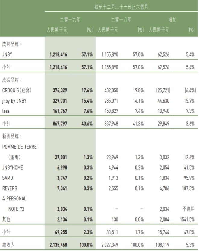 JNBY占總收入57.1% 新興品牌最低僅占0.1%